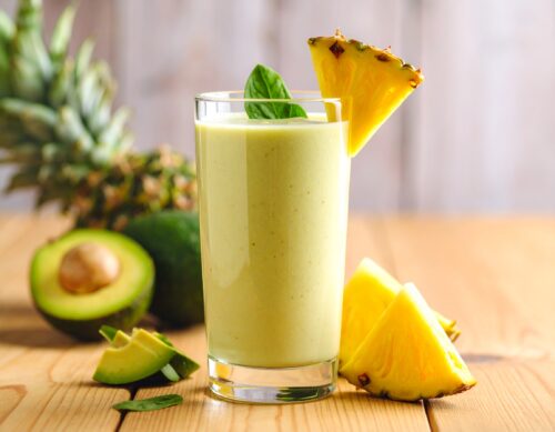 Milkshake verde: Mezclar con leche vegetal para lograr una textura cremosa y un sabor equilibrado.